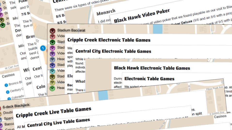 Our Colorado Gaming Guide includes blackjack, table games and video poker information from our latest visit to Colorado. At the end of October 2021, we walked through all the casinos in Black Hawk, Central City and Cripple Creek.